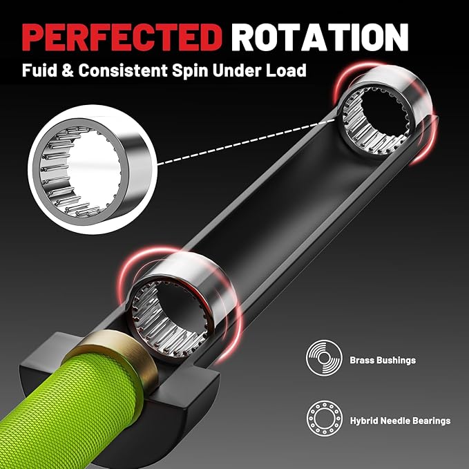 - Needle Bearings & Bushings – Smooth Rotation, Zero Wobble: Unlike standard barbells with only ball bearings or bushings, our stiff barbell combines both for unmatched stability. Perfect for controlled lifts, dynamic workouts, or Olympic weightlifting.