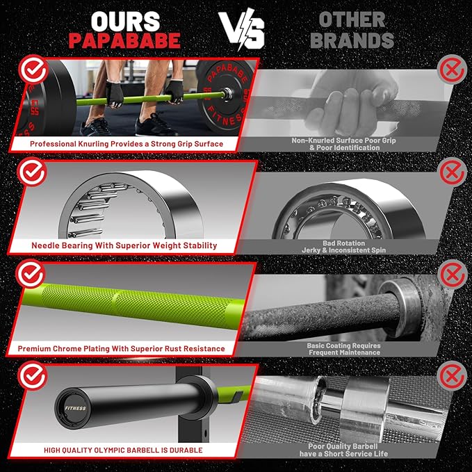 PAPABABE Olympic Barbell, 2-inch 45lb/35lb Weight Bar for Strength Training. 6.5ft/7ft Olympic Bar, 1000lb Plus Capacity, Chrome/Zinc Plating, knurled Grip for Bench Press Deadlift Squat