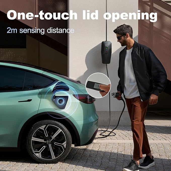 - 【One-Touch lid Opening】VDLPOWERVP Tesla 32A EV Charger Press the button within 2 metres to open the cover, making your charging more convenient.6M charging cable 32Amp Level 2 EV charger is compatible with J1772 electric vehicles and plug-in hybrid vehicles (North American Standard).