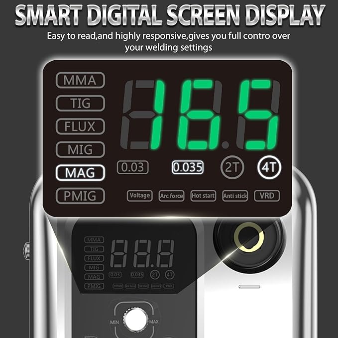 - Advanced Technology & Premium Durability: Powered by advanced IGBT Inverter technology, this welder delivers stable arcs, reduced spatter, and 30% faster cooling compared to traditional models. The stainless steel brushed housing isn’t just eye-catching—it’s built to resist corrosion and heat. Its sleek metallic finish transforms it into a workshop work of art, blending industrial strength with modern elegance.