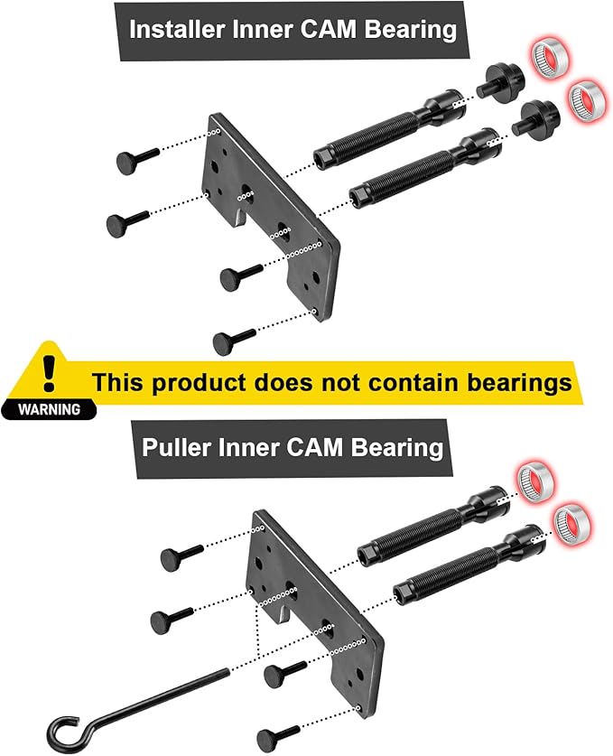 - 【Package Included】1 x Black steel cam bearing plate, 4 x screws, 2 x Installer tool, 2 x Puller tool, 1 x Stick, 1 x Installation Instructions.
