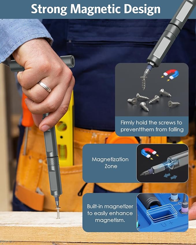 - Easy Identification and Magnetic Slot Design: The screwdriver set has an intuitive colored ring for quick bit identification, increasing productivity. The handle includes a powerful magnetic compartment that enhances bit magnetism, securely holding the bit in place for fast and efficient use