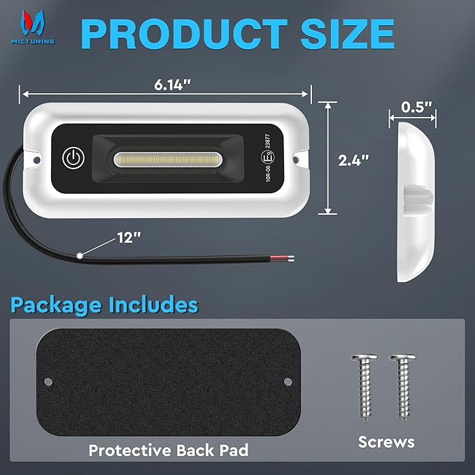 MICTUNING 6 Inch Interior RV Porch Light, Utility RV Awning White 6000K, Smart Touch Screen, Indoor IP68 Waterproof Aluminum for SUV Camper Trailer MPV Boat Home Cabinet Hallway
