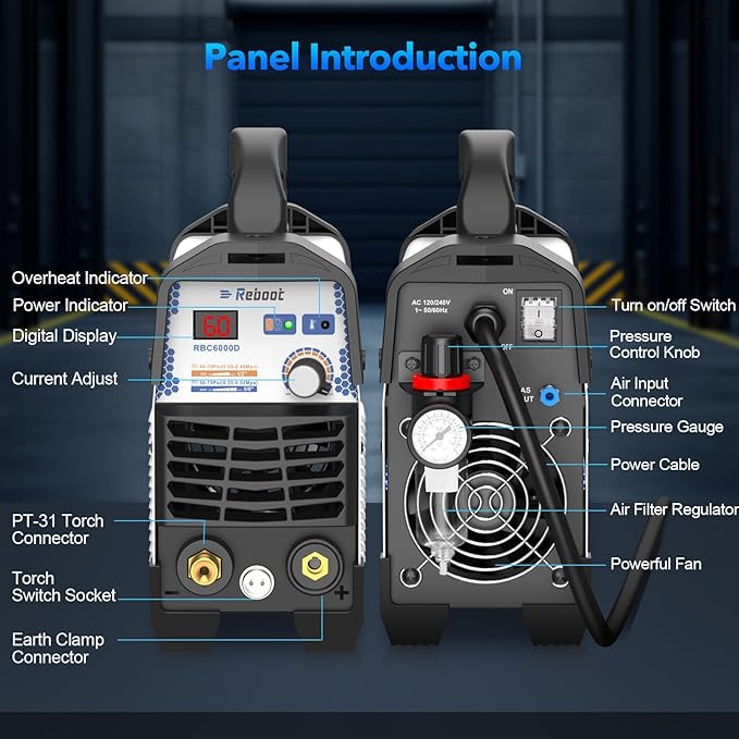 Reboot 60A Plasma Cutter Dual Voltage 120V/240V, 1/2" Clean Cut IGBT Inverter, Portable Metal Cutting Machine with Torch & Tips - RBC6000D 2025 Upgraded