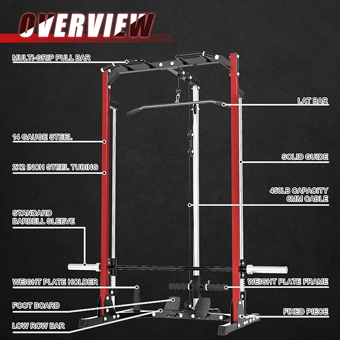 - Full Accessory Set Included – No Extra Purchase Needed: Everything you need is already in the box: lat bar and cable bar. The integrated LAT pulldown system and low row setup give you a complete upper-body workout in a small footprint — no need to buy separate machines or attachments. The LAT system supports both 1'' and 2'' weight plates. The Smith bar supports 2'' weight plates.