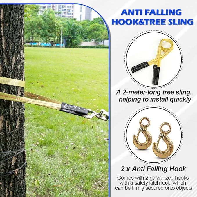 - Premium Durability:Crafted from forged carbon steel with high-temperature resistance, our zipline tensioning kit withstands extreme stress and outdoor elements. Its alloy steel anti-drop hook delivers superior load capacity and rust resistance, ensuring lasting, reliable performance