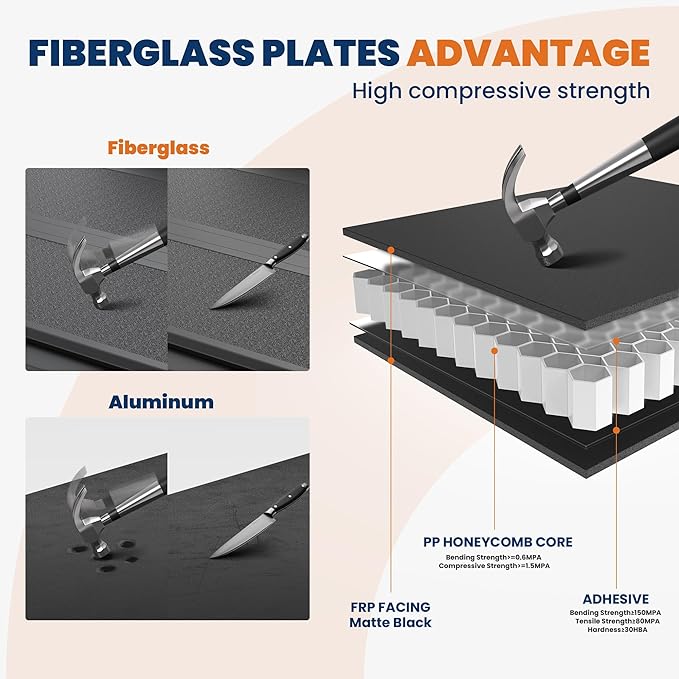 - Exemplary Craftsmanship: Fabricated utilizing a combination of fiberglass and PP Honeycomb design, the cover offers superior heat dissipation, scratch resistance, UV protection, and a remarkable hardness exceeding 30HBa. With an excellent load-bearing capacity surpassing 500lb, it guarantees exceptional durability. Enhanced wear resistance ensures an extended lifespan for prolonged usage.