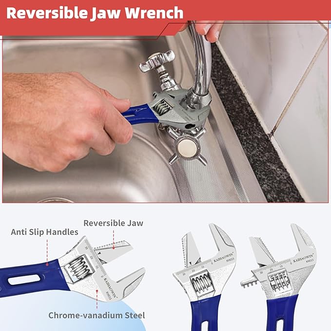 - 【Dual-Purpose Adjustable Wrench】 The 6-inch wrench functions as both a pipe wrench and an adjustable wrench, offering versatility for plumbing and general repair tasks.