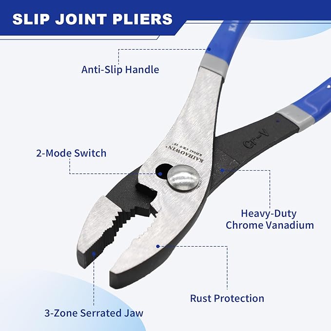 - 【5 Tools in 1 Convenient Set】 This all-in-one toolkit includes 5 essential tools: 8" needle-nose pliers, 5" long-nose pliers, and 5" precision snips, slip joint pliers,rubber mallet, providing everything you need for basic repairs and DIY projects.