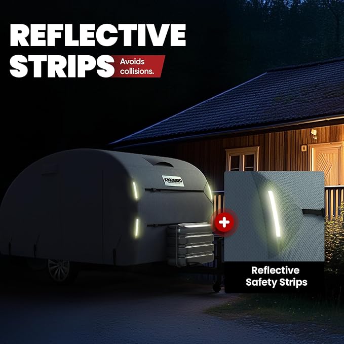 KING BIRD Heavy Duty Teardrop Travel Trailer Cover Fits 10'-12' Trailers, 5 Layers Top Waterproof Camper Cover with Windproof Strap for R-Pod Trailers, Clamshell Trailers