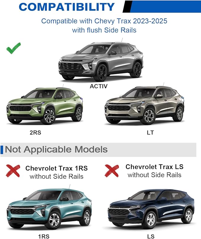 - 【Compatibility】Compatible with Chevy Chevrolet Trax 2RS ACTIV LT 2023 2024 2025 2026 WITH Factory Rails.Please check your vehicle's year, make and model before purchase.