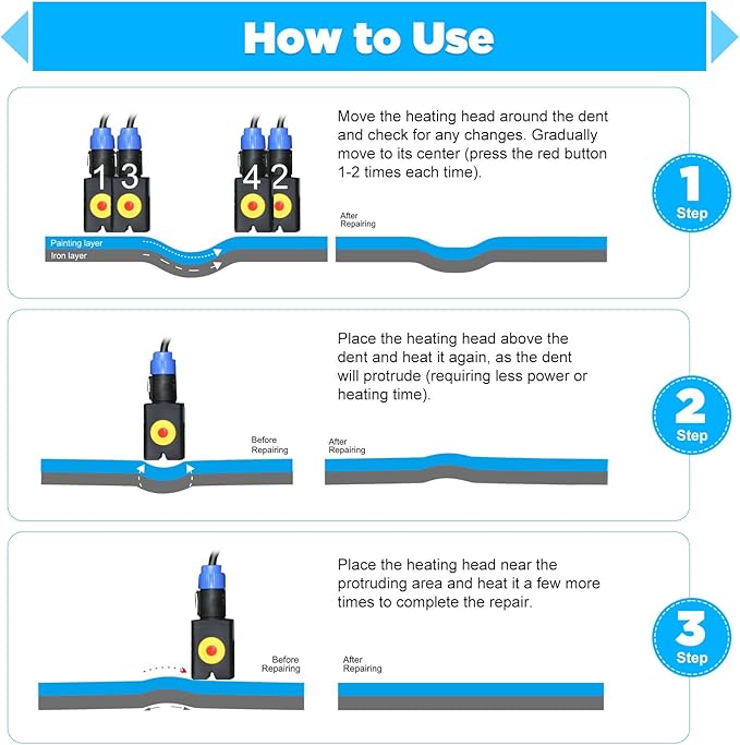 - Advanced Electromagnetic Induction Technology: Uses induction heating expansion to repair round and smooth dents without damaging paint, preserving the original metallic texture and gloss of your vehicle.