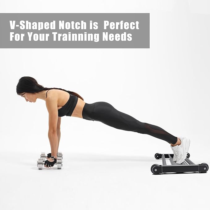 - 【Comfortable V-Shaped Bar】The 3.5-inch wide v-shaped bar with rounded steel edges ensures safer and more comfortable use. Secure your heels or toes firmly during split squats, glute bridges, or ab rollouts