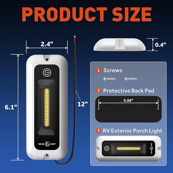 - EXCELLENT BRIGHTNESS: Our 6-inch touch porch light has a power of 10W and a working voltage range of 10-30V DC, which can emit 850 lumens of bright white light. Touch light provides clear and bright lighting at night to ensure your safety and convenience during your journey.