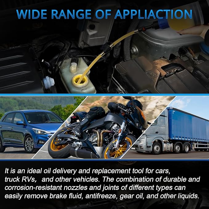 - EFFICIENT FLUID TRANSFER: The fluid extractor pump offers quick and easy removal of oil, transmission fluid, or other automotive fluids. Whether you're changing oil or transferring fluids, this manual fluid extractor ensures a clean, hassle-free job.