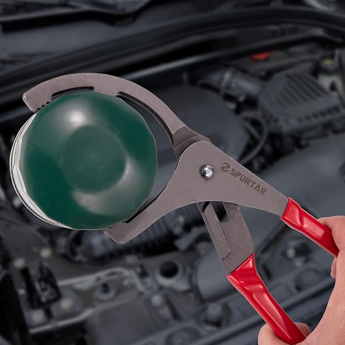 - Swivel Handle for Tight Spaces: Ergonomically designed swivel handles allow 180-degree rotation, making the oil filter wrench easy to remove or install oil filters in hard-to-reach areas, suitable for confined engine bays and complex vehicle designs. Spurtar 9" & 12" oil filter pliers have a serrated design that provides a strong grip to remove the stuck oil filter easily