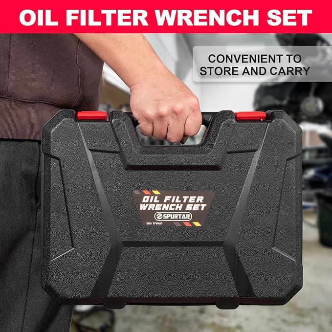 - Easy to Carry & Storage: All oil filter wrenches are well organized in a portable case, easy to carry, and safe to store. No longer worry about lost or messy tools. Always ready to hand when needed
