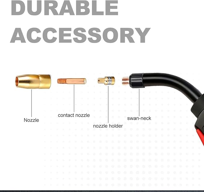 - Package list: 5pcs Contact tip .030 , 1pcs diffuser , 1pcs nozzle. 1pcs mig gun