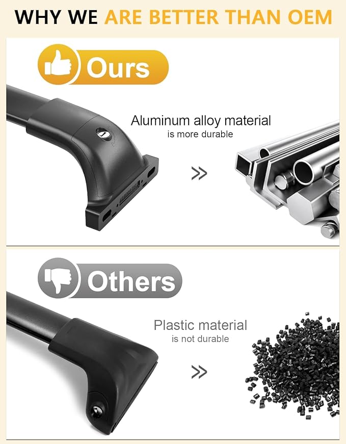 - 【Beats Original OEM】We added a metal lock to the original crossbar for safety and anti-theft.High-grade aluminum alloy crossbars can support luggage, ladder or cargo,roof rails can support a weight of 260 lbs (118kg).