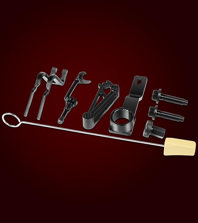 - 【Package Includes】1 x Valve Spring Compressor Tool, 1 x Cam Phaser Holding Tool, 1 x Crankshaft Positioning Tool, 1 x Timing Chain Locking Tool, 2 x Crankshaft Pulley Bolts. These 6 tools typically used together for proper maintenance, breeze to replace the timing kit including camshaft, cam phaser, crankshaft, timing chain and others. Great engine repair kit, complete timing tool kit for Ford.
