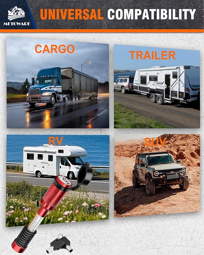 - DURABILITY: The towing hitch lock features high quality solid steel with electrophoretic paint to prevent it from corrosion. And it has a all-weather rubber cap, which effectively protects the keyhole from dirt, water and dust, making the lock last for a long time.