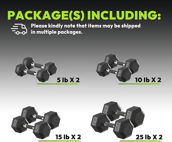 Hex Dumbbell 45-480 lb Set, Rubber Encased Exercise & Fitness Dumbbells for Home Gym, Hand Weights for Strength Training