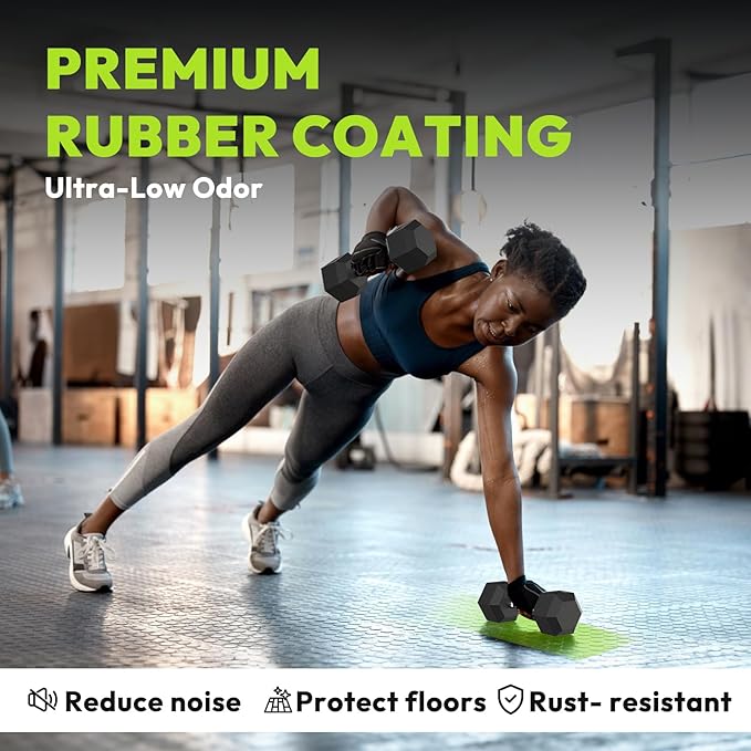 - Hexagonal Design for Stability: The hexagon-shaped heads provide stability and prevent rolling, ensuring safe and effortless workouts while offering convenient storage. This practical design makes them a reliable choice for fitness routine.