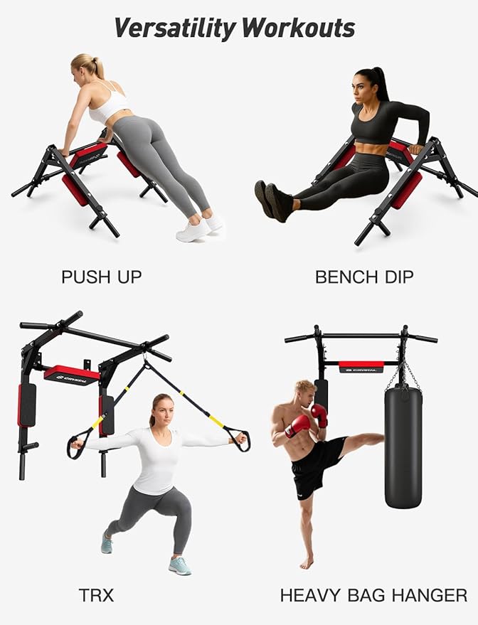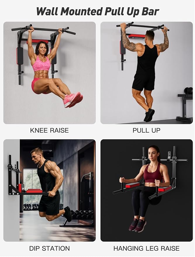 CRYSTAL FIT Multifunctional Wall Mounted Pull Up Bar, Chin Up Bar and Dip Station, Heavy Duty Steel Supports to 440 Lbs, Home Gym Workout Indoor Power Tower Set Training Equipment Fitness