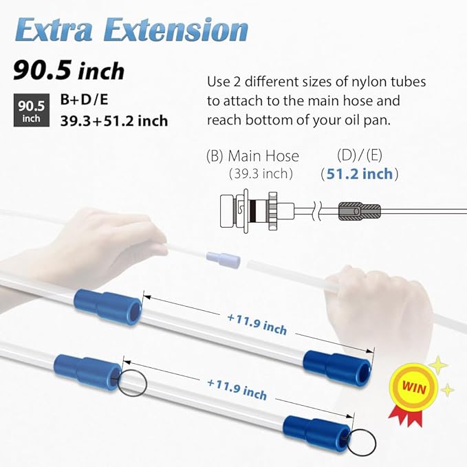 - 【Extract Every Drop – No Oil Left Behind】 Equipped with two upgraded, extra-long suction tubes of different diameters, allowing you to reach deep into the reservoir and remove oil completely. Say goodbye to stubborn sludge and leftover fluid.