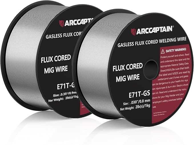 ARCCAPTAIN Flux Core Welding Wire .030“ & .035" E71T-GS Mig Welding Wire 2-Pound Spool Gasless Mild Carbon Steel Compatible With Lincoln Miller Forney Harbor Welder
