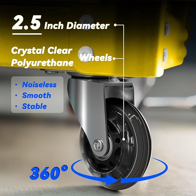 - 【360°& 330 LBS】Equipped with 4 pcs sturdy 2.5"/6.35cm 360° swivel casters. Smooth rolling stool wheels for easily moving around on various floor even on complex surfaces. The heavy duty mechanic creeper is specially designed with a thick angle steel frame for long-lasting performance and reliability. Its design can withstand heavy use, with an overall weight capacity of around 330 pounds. It is a sturdy and practical choice for use in garages, workshops and other places