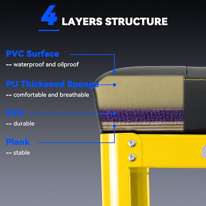 - 【4 layers Structure】The creeper seat cushion is 3.35 inches thick and consists of FOUR layers structure. The first layer is a solid wooden plank, the second layer is a durable EVA, the third layer is a comfortable and breathable PU thickened sponge, and the fourth layer is a waterproof and oilproof PVC surface. Soft, Firm, and Comfortable