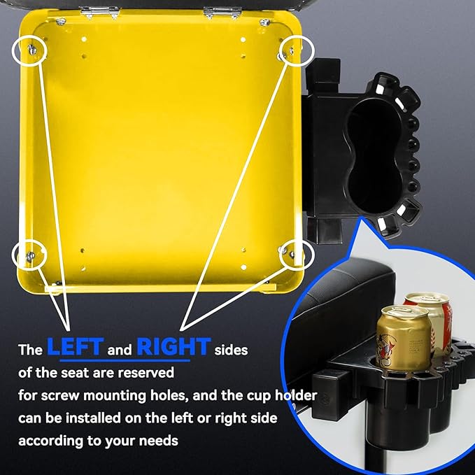 - 【Left-handed & right-handed Friendly】The left and right sides of the stool seat are reserved for screw mounting holes, and the CUP HOLDER can be installed on the left or right side according to your needs. The cup/tool holder has space for two beers or other tools. Do not have to get up as often to the garage beer fridge - saves steps and improves work efficiency