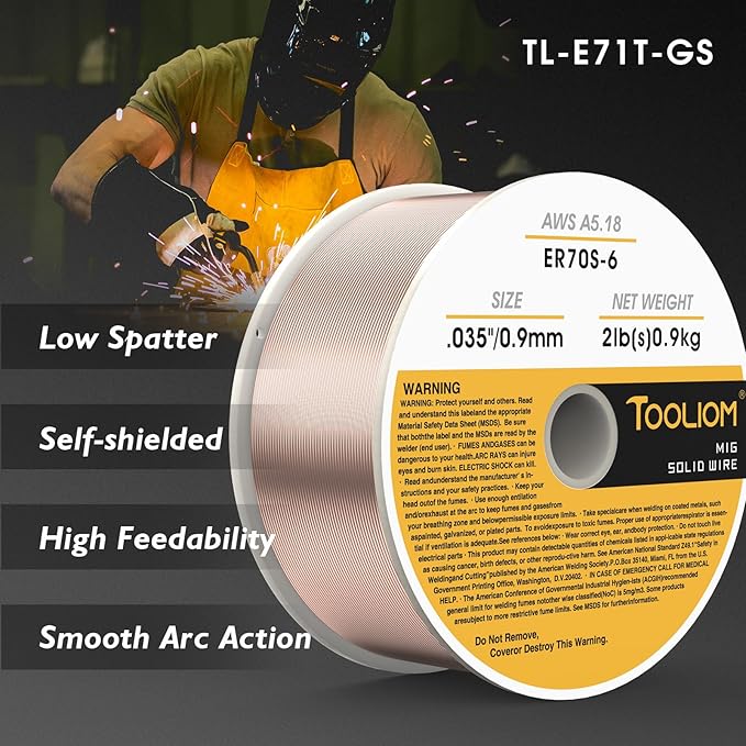 TOOLIOM ER70S-6 .035"(0.9 mm) Mild Steel MIG Solid Welding Wire on 2-Pound Spool Compatible with TL-200M Pro and TL-250M Pro