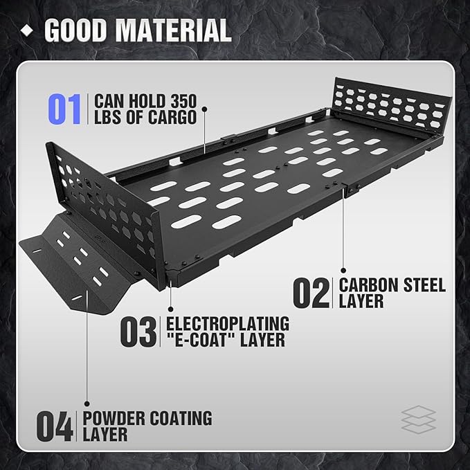 - 【High Quality】Constructed from high-quality steel with a rust-resistant coating, this rear cargo rack is engineered for exceptional strength and long-lasting durability.