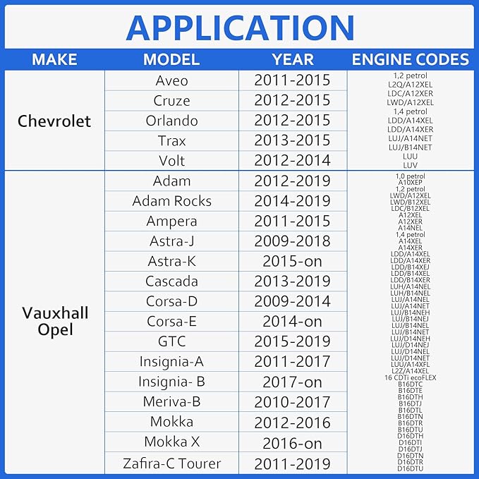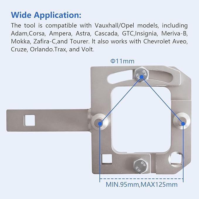 - 【Wide Application】: The tool is compatible with Vauxhall/Opel models, including Adam, Corsa, Ampera, Astra, Cascada, GTC, Insignia, Meriva-B, Mokka, Zafira-C, and Tourer. It also works with Chevrolet Aveo, Cruze, Orlando, Trax, and Volt.