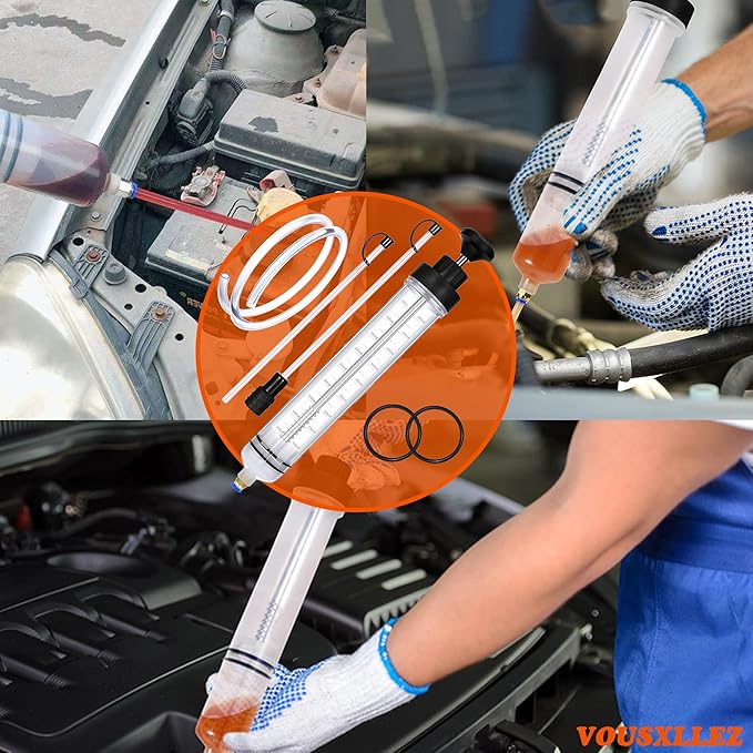 - Wide Application and Ready for Any Fluid: This auto fluid extractor syringe is manufactured from high-quality polyethylene, keeping it highly resistant to heat and chemical corrosion to easily handle any engine fluid. The 500cc fluid extractor is suitable for extracting and injecting brake fluid, engine oil, gear oil, transmission oil, water, etc. Suitable for fluid transmission in cars, trucks, RVs, motorcycles, lawn mowers, engines, ships, etc. where fluid needs to be extracted or replaced.