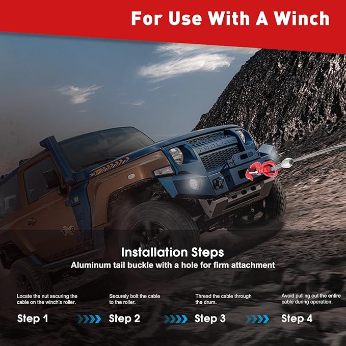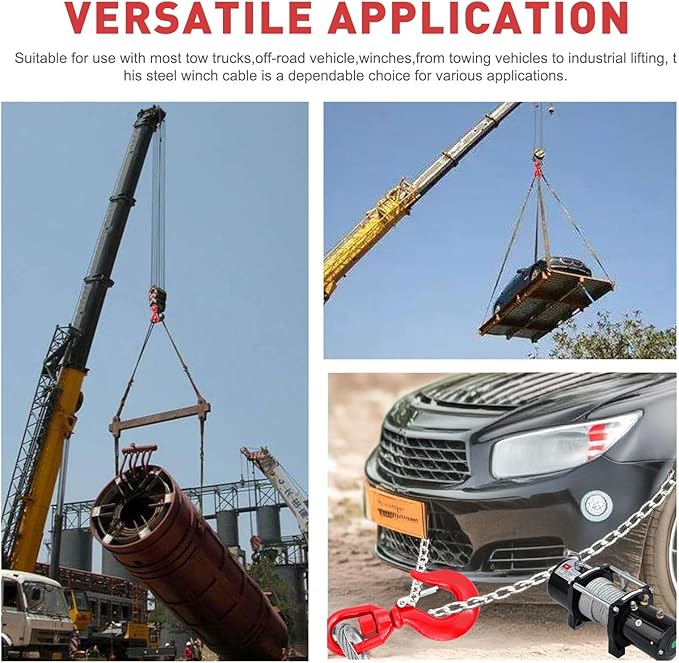 - Versatile Application: Suitable for use with most tow trucks,off-road vehicle,winches,from towing vehicles to industrial lifting, this wire rope is a dependable choice for various applications