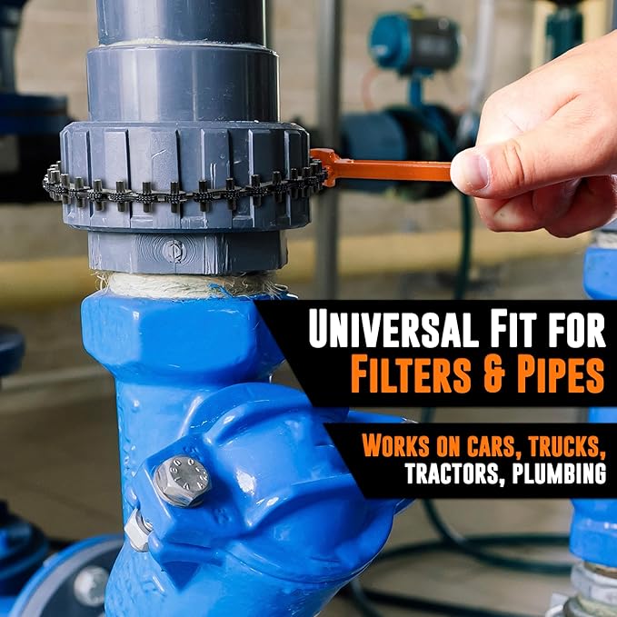 - VERSATILE APPLICATIONS: Functions as both chain pipe wrench and large oil filter wrench; Ideal for plumbing, automotive maintenance, and heavy industrial tasks; Works where standard wrenches fail.