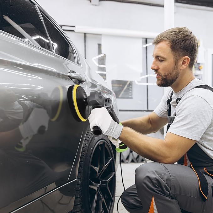 - 【1600W High Performance Polisher】The Car Polisher features a rugged 1600W pure copper motor for reliable and consistent performance. Built-in carbon brushes and multiple heat sinks ensure stable operation even under prolonged use, making it suitable for handling a wide range of delicate or difficult polishing tasks.