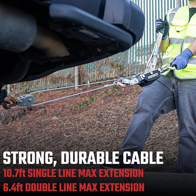 NEIKO 02254A Come Along Winch, 4-Ton (8,000lbs) Pulling Capacity, 9.8Ft, 3 Hook, Heavy Duty Power Cable Come Along Tool with Dual Gears, Hand Winch Cable, Automotive Hoist Winch Puller, Recovery Gear