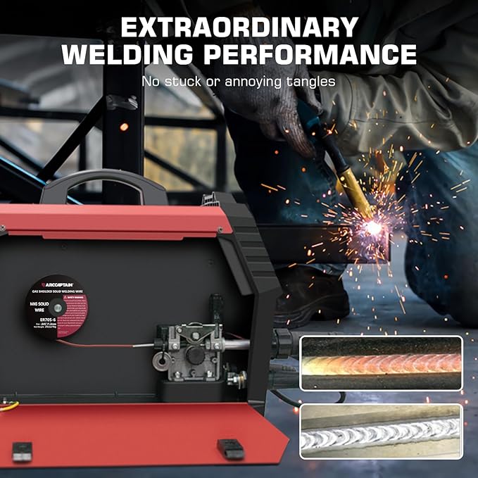 - High-quality: ARCCAPTAIN's ER70S-6 mig welding wire .045" meets industry standards(Net Weight: 2lbs), ensuring consistent performance, superior strength. With its smooth feeding and stable welding parameters, you can achieve optimal penetration, high deposition rates, and exceptional overall welding performance. TÜV Tested and Approved: Our welding wire .045" has undergone rigorous testing and has received TÜV certification. With a balanced combination of manganese and silicon deoxidizers, this welding wire ensures efficient deoxidization of the weld pool, resulting in high-quality welds with minimal impurities.