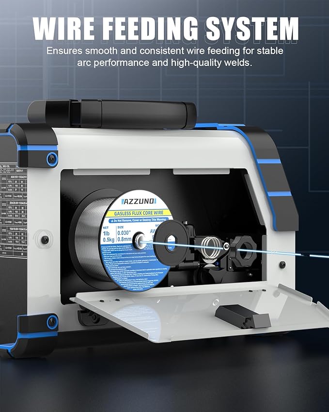 - 【3-IN-1 WELDER MACHINE】: The AZZUNO MIG-135L welder supports Gasless Flux Core MIG, Lift TIG, and Stick welding. Compatible with 110V input power, it works with .030"/.035"/.040" flux core wire, and E6013 electrodes, making it ideal for various welding applications.(Note: LIFT TIG welding must be performed with Ar. ALWAYS wear certified welding gloves and a face shield.)