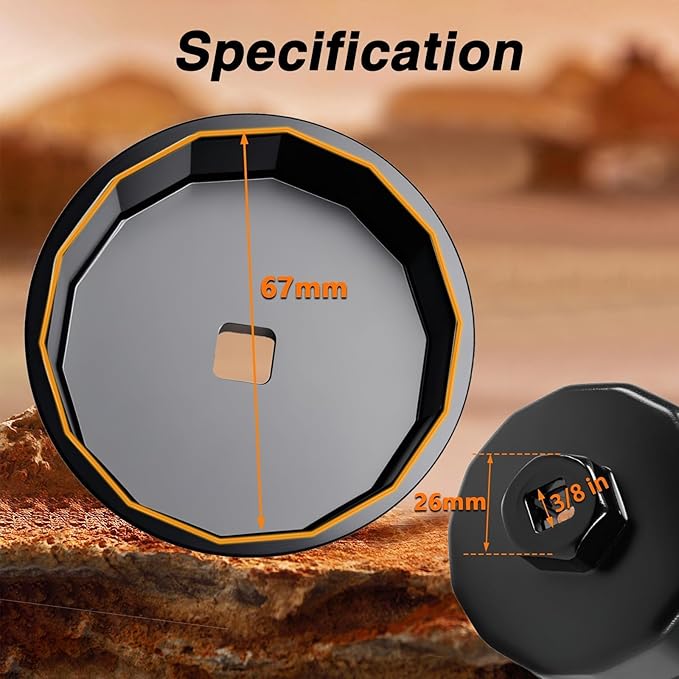 - 【Specification】:This oil filter wrench is compatible with oil filters with 66-67mm 14 flutes, and can be used with a 3/8-inch ratchet wrench or a 26mm hexagonal socket.