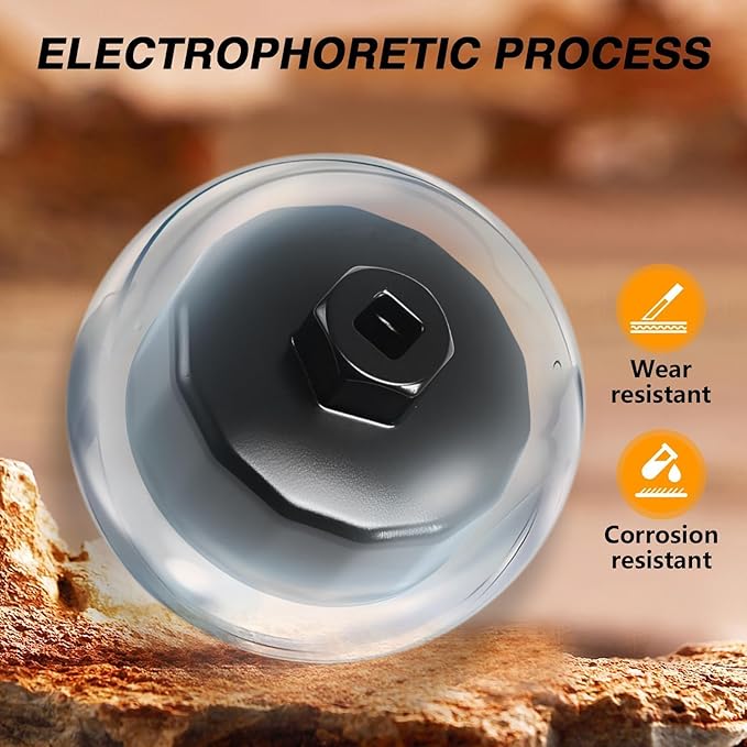 - 【Reliable Material】: The 67mm 14 flutes spin-on the filter cup wrench is made of aluminium, which has high strength performance. In addition, the oil filter cap removal socket is undergoes electrophoretic process, increase its corrosion performance. It is a good replacement.