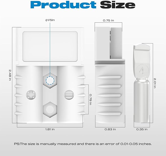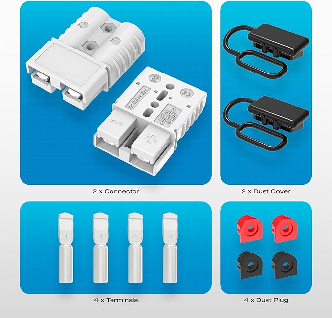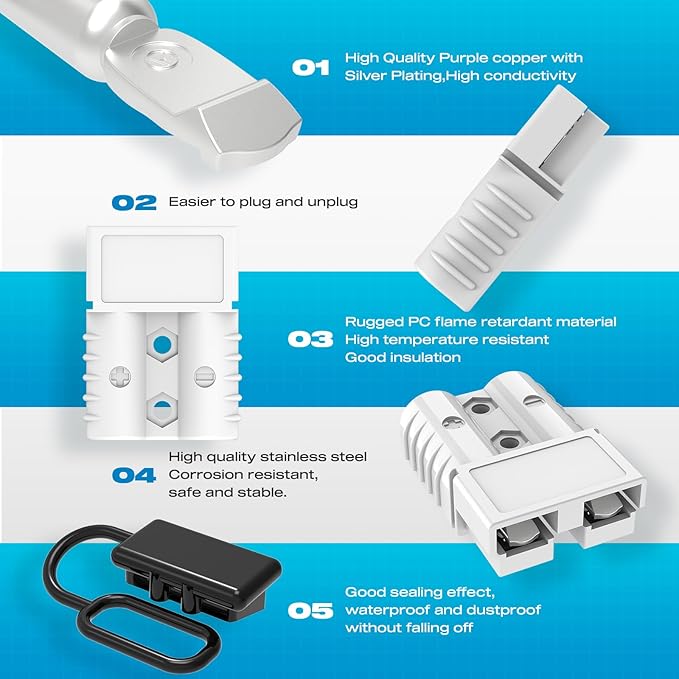 - Premium Material: This quick battery connector is made from durable, flame-retardant PC material with silver-plated copper terminals, ensuring excellent conductivity, high-temperature resistance, and corrosion resistance