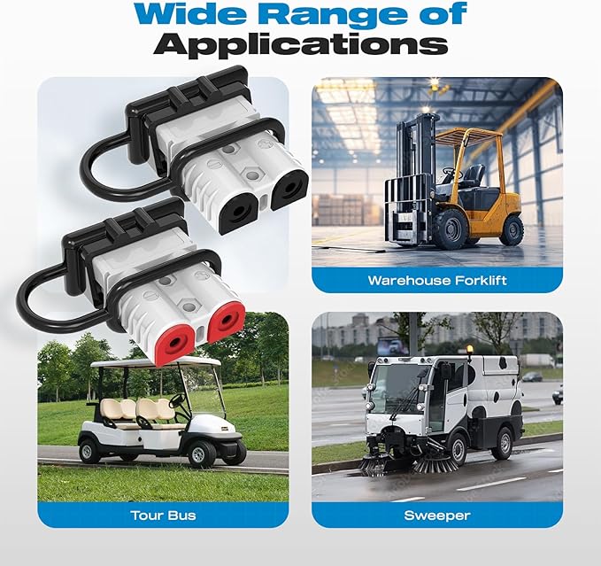 - Versatile Applications: This quick-connect battery connector is suitable for vehicles, ATVs, RV winches, elevators, cranes, boats, forklifts, and trailers, among others
