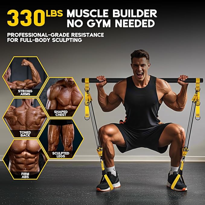 - Premium Heavy-Duty Pilates Equipment: Built to last with industrial-grade materials, our Portable Pilates Bar Kit with Resistance Bands features 3 steel-core pipes wrapped in soft 5mm foam for a secure, comfortable grip. Perfect for intense workouts, this professional adjustable heavy-duty squat workout equipment for men delivers unmatched durability for serious fitness enthusiasts.