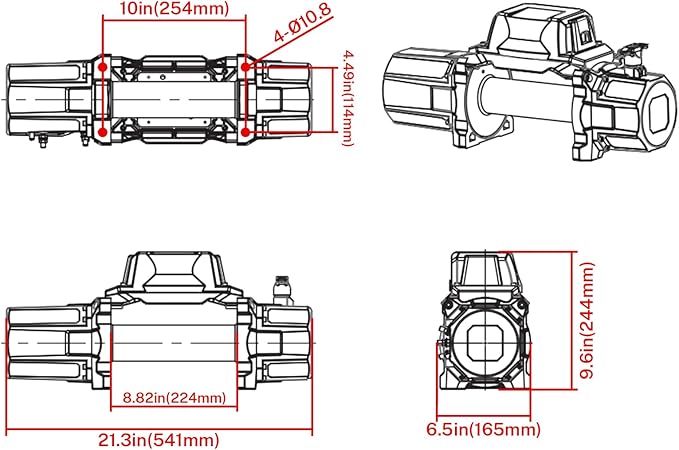 - 【Worry-free after-sales】Mounting size 10 inches * 4.49 inches No mounting plate It is very important to keep the cable wrapped around the drum for at least 10 turns, otherwise the cable may easily come out XYCLE professional winch manufacturer has a strong technical team to solve any problem in your use