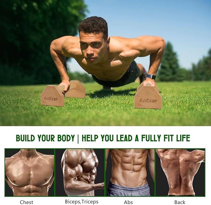 - Triangular Stability System: The push-up bar is design with wide-base geometric structure prevents tipping; Textured wood surface improves grip safety; Even if hands sweat, can no be slip